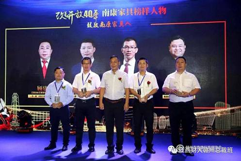 会上,江西维平创业家具实业有限公司董事长刘维平(赣州总裁6班学员)、赣州市文华家瑞家具实业有限公司董事长吴述文(南昌总裁6班学员)、赣州市南康区金海家具有限公司董事长郭春平(赣州总裁4班等学员)、赣州市南康区世纪家缘家具有限公司创始人廖忠喧(赣州总裁6班学员)、江西木牛家具有限公司董事长廖为敏(南昌总裁6班学员)、江西潘峰家居有限公司总经理潘峰(南昌总裁6班学员)等江西财大EMBA总裁班学员荣获改革开放40年南康家具榜样人物。